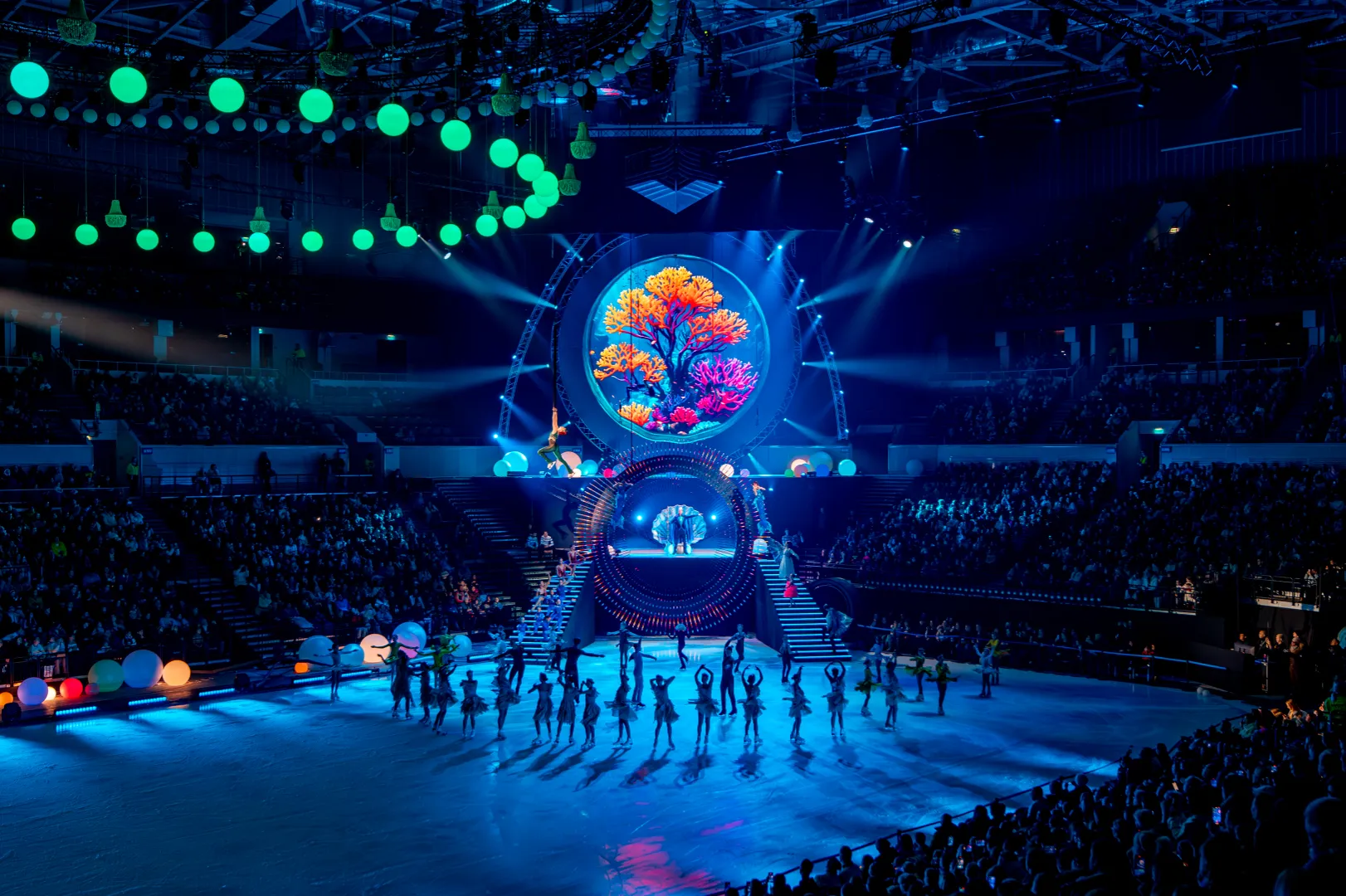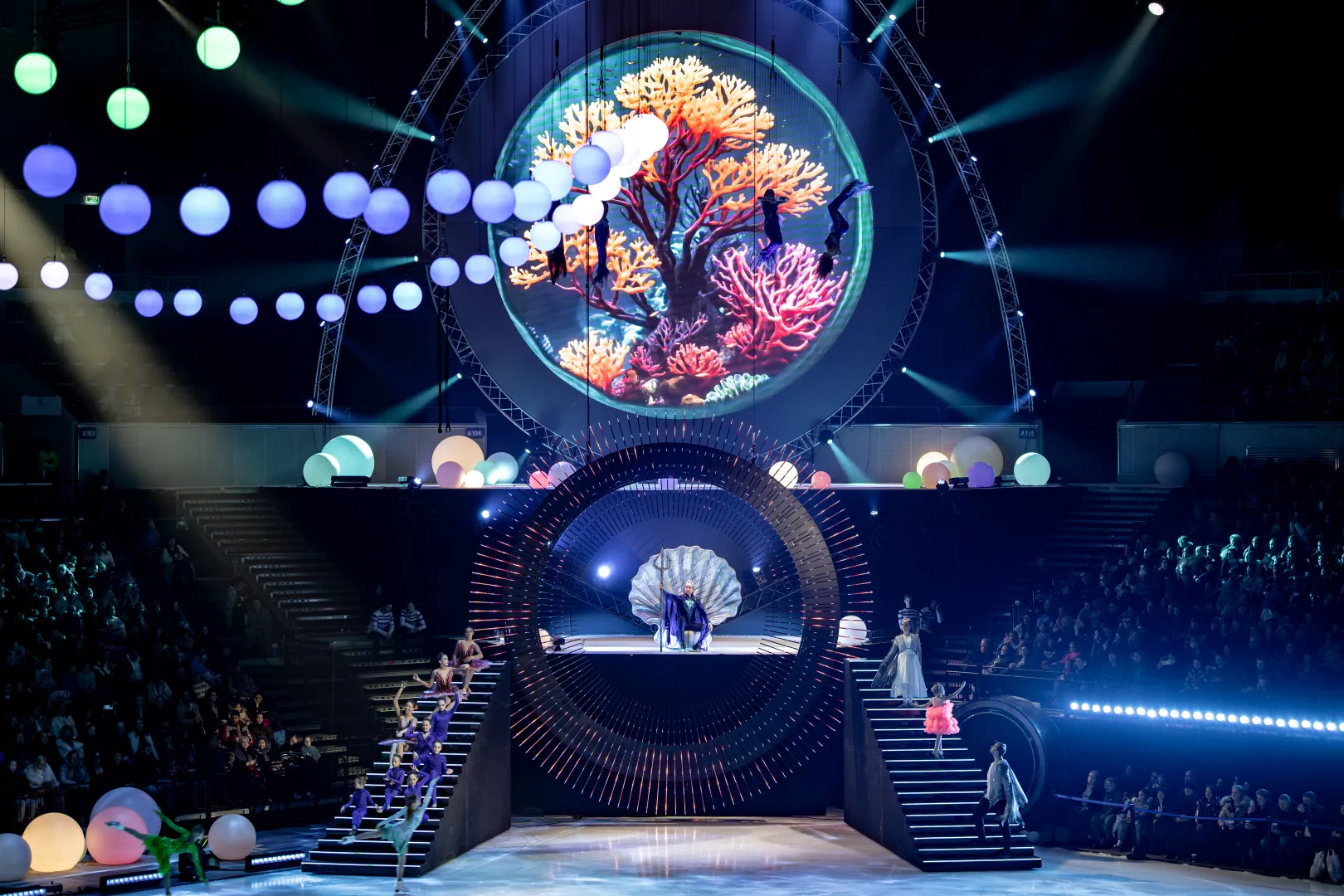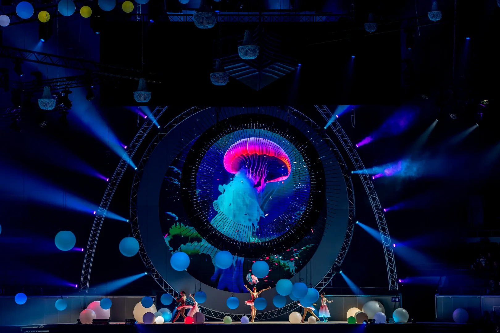 Наша студия создала контент для экрана, который сопровождал всё шоу, превращая ледовое пространство в захватывающий подводный мир и сказочные декорации.